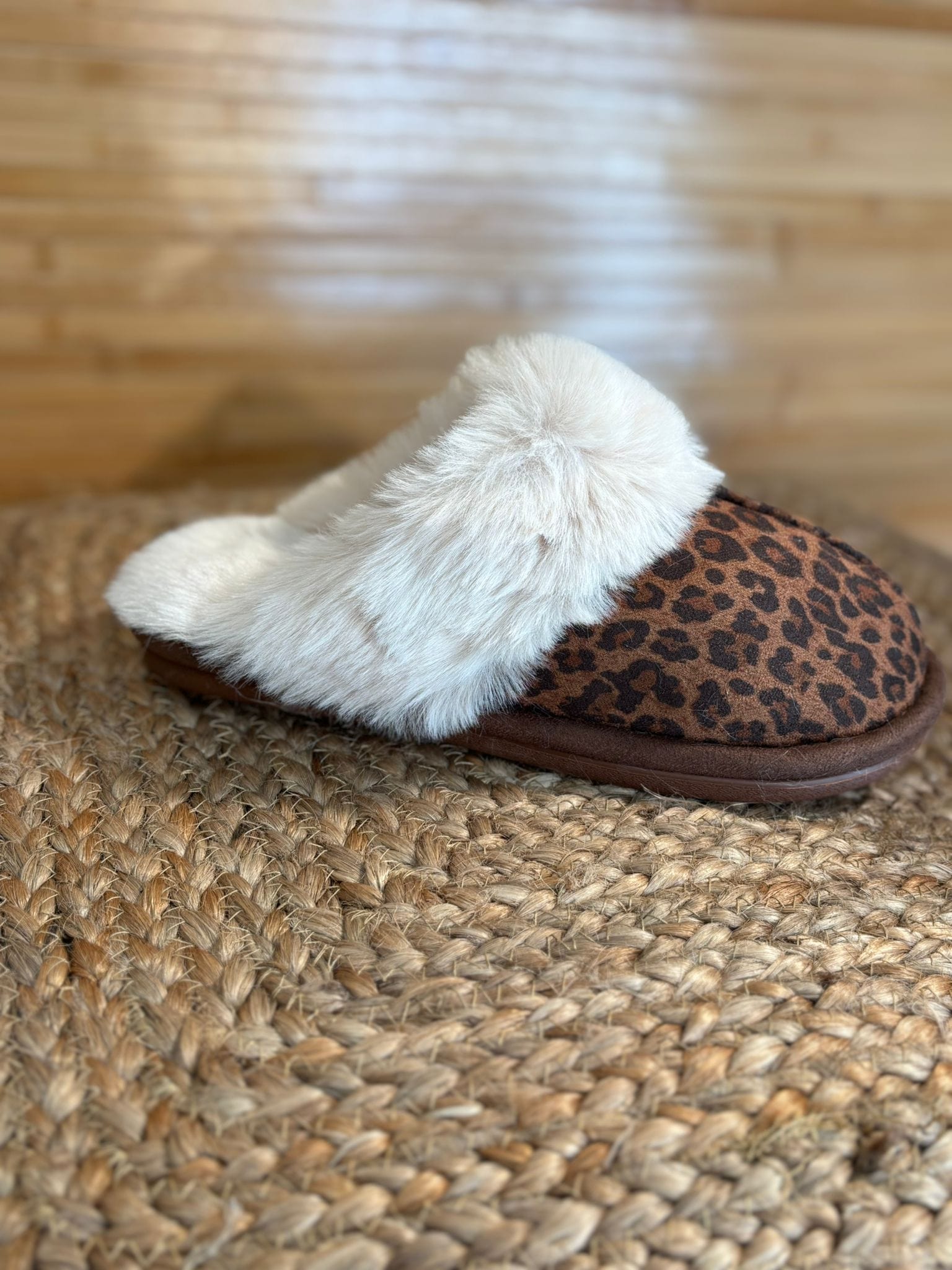 3’s & 4’s Leopard Print Fluffy Faux Suede Mule Slippers