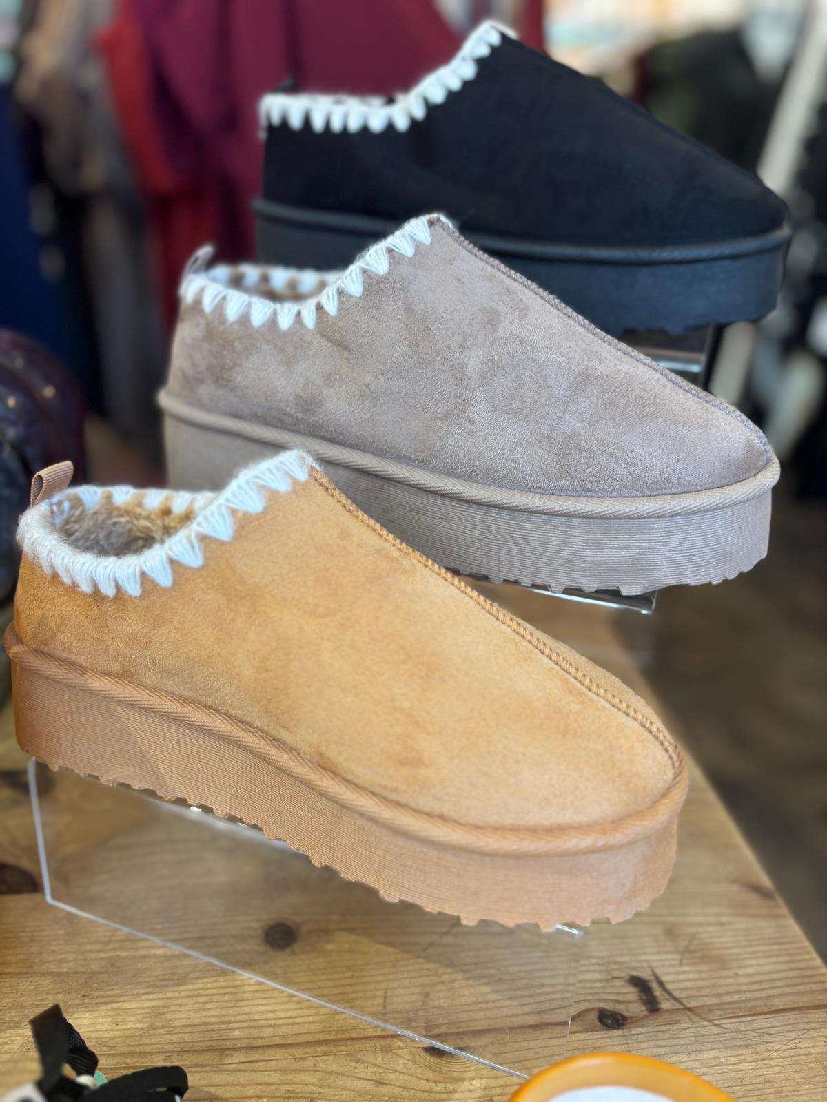 • Faux suede outer & faux fur lining