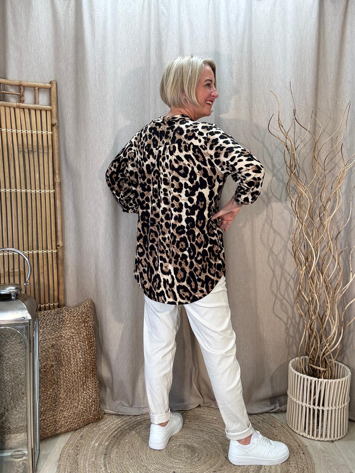 - Classic tan leopard print top made from slinky smooth crease resistant fabric