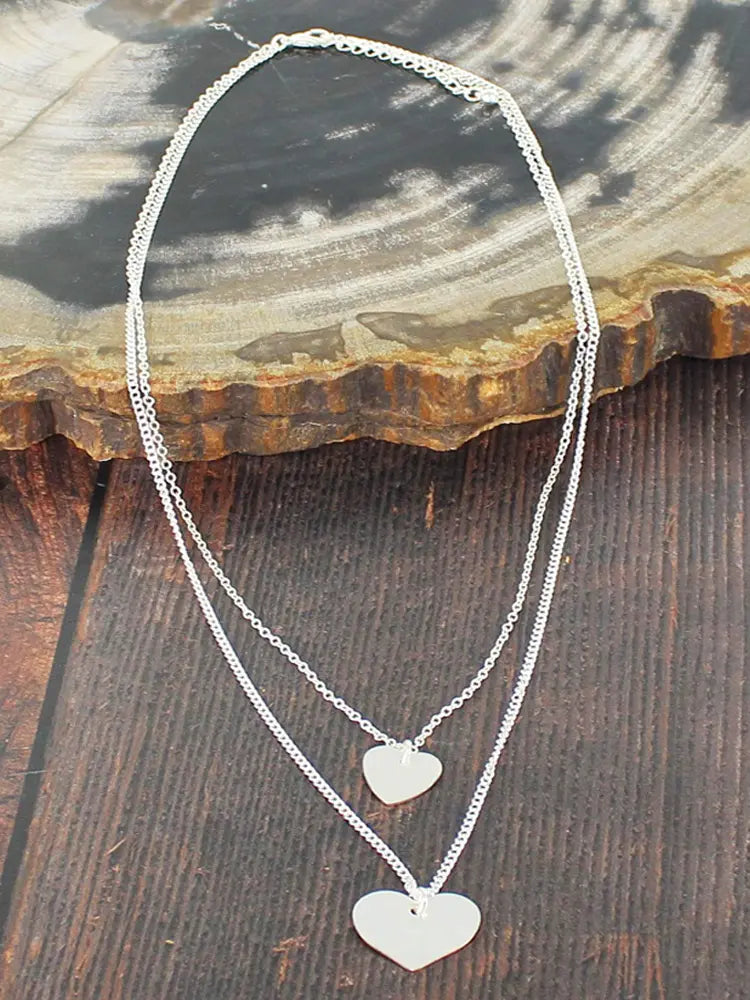 Layered Twin Heart Short Necklace By Suzie Blue Gift