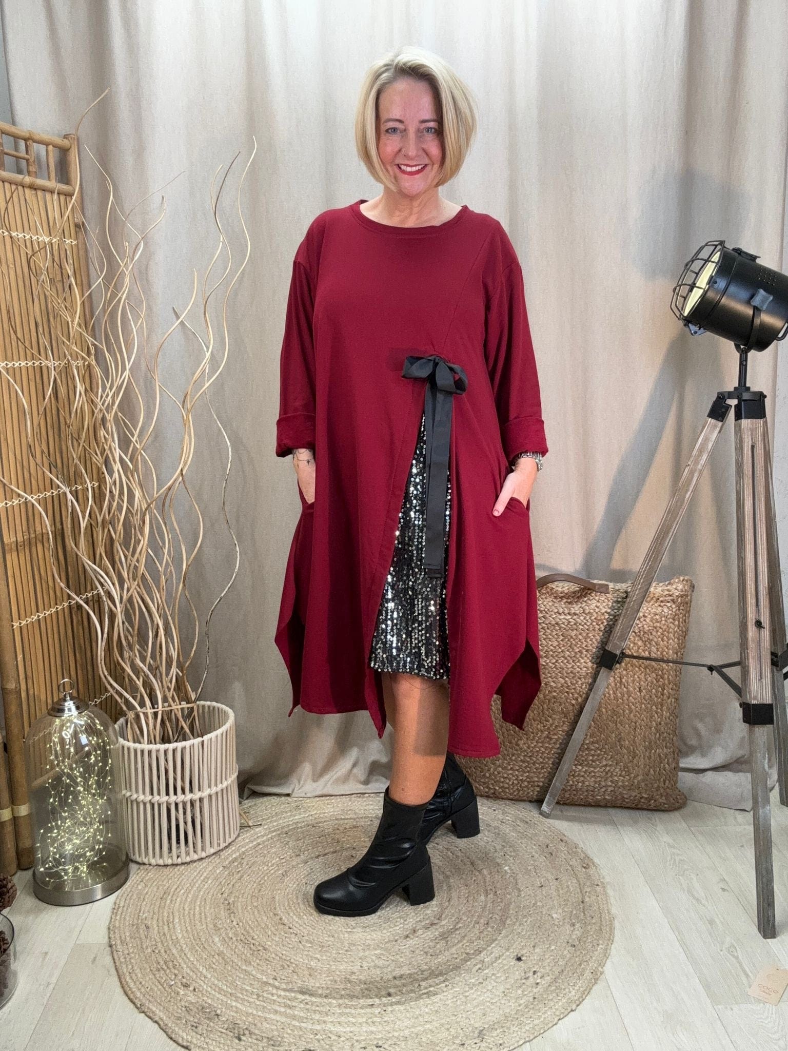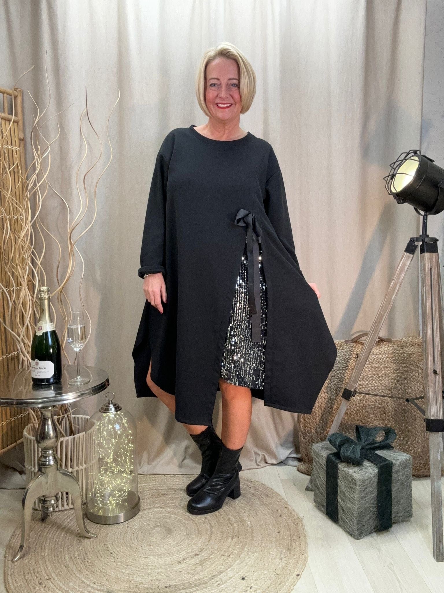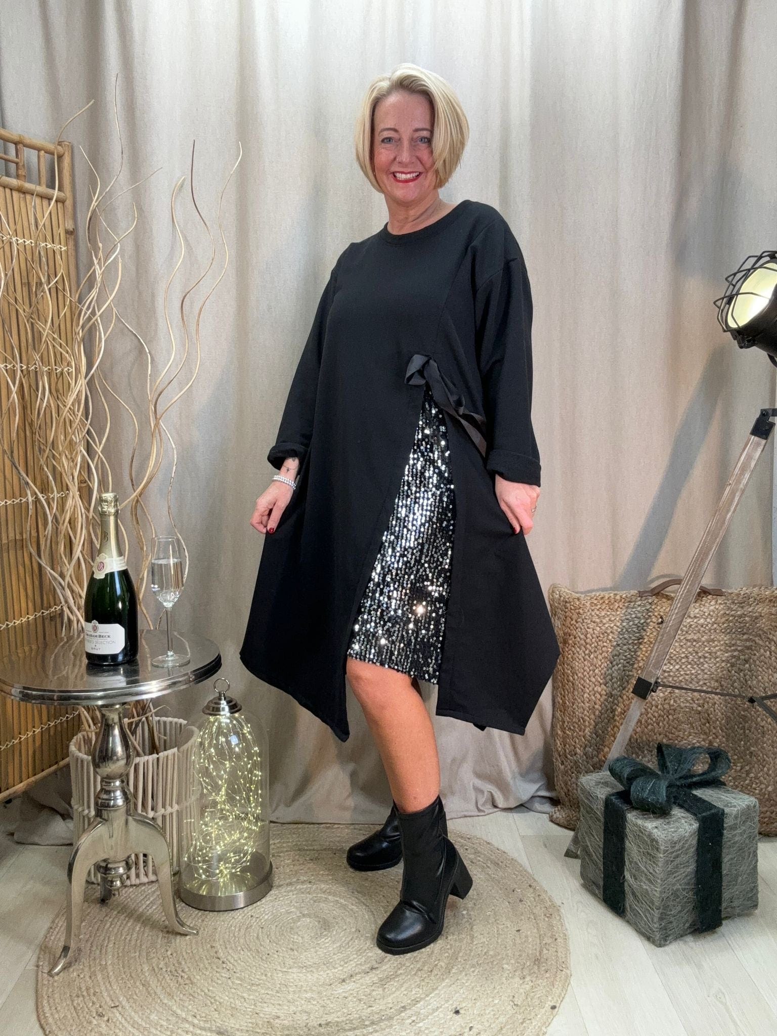 - Stunning jersey fabric dress with a sequinned panel topped off with a big bow