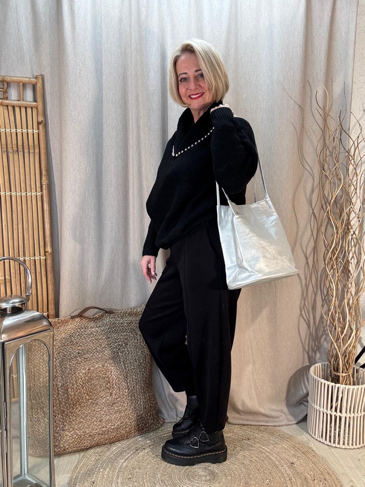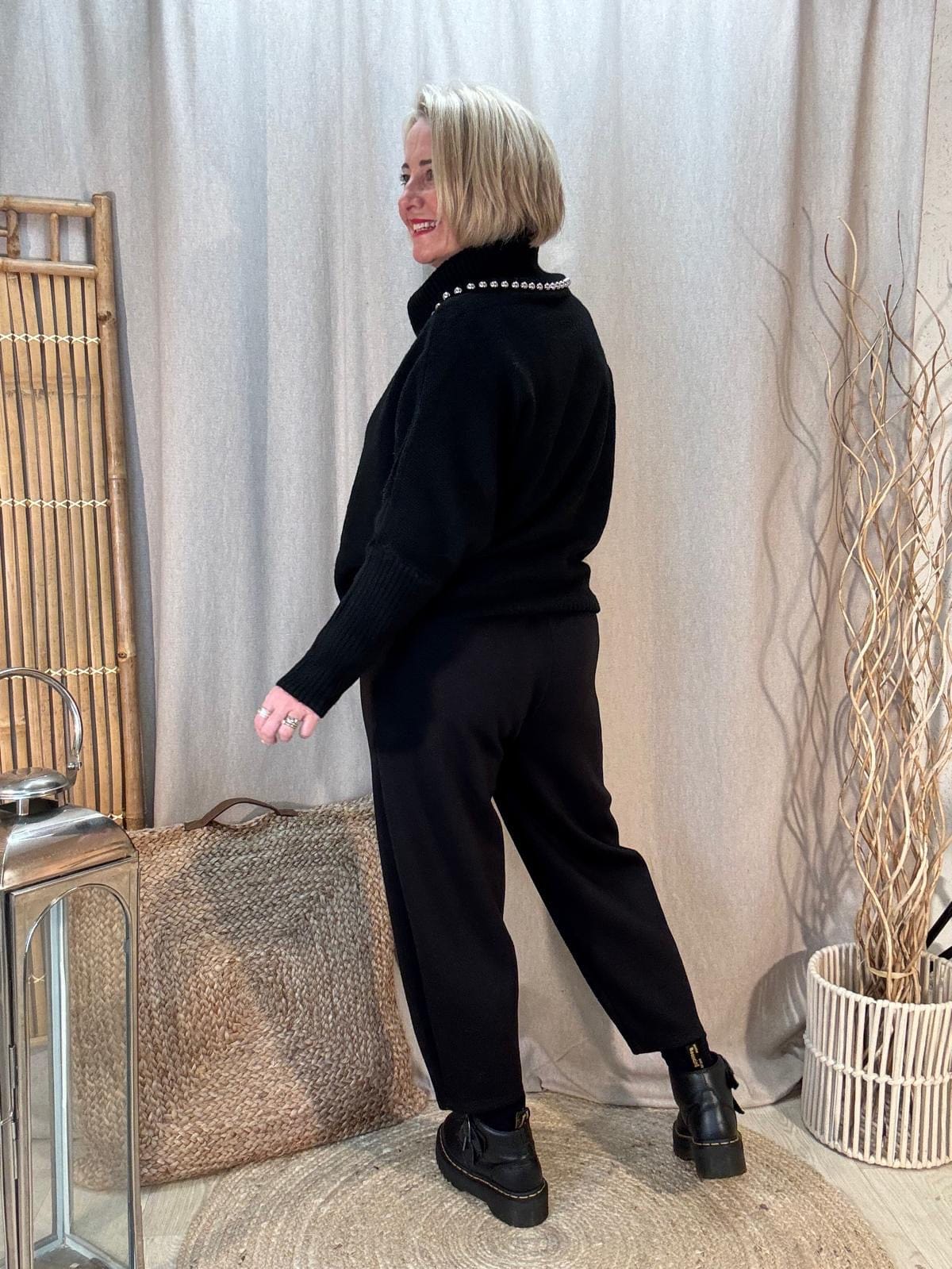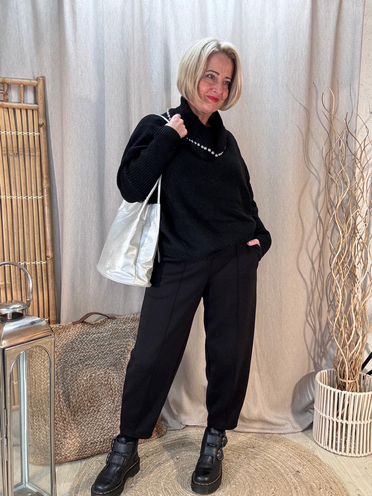- Striking fine knitted jumper with chunky silver beaded cowl neck line