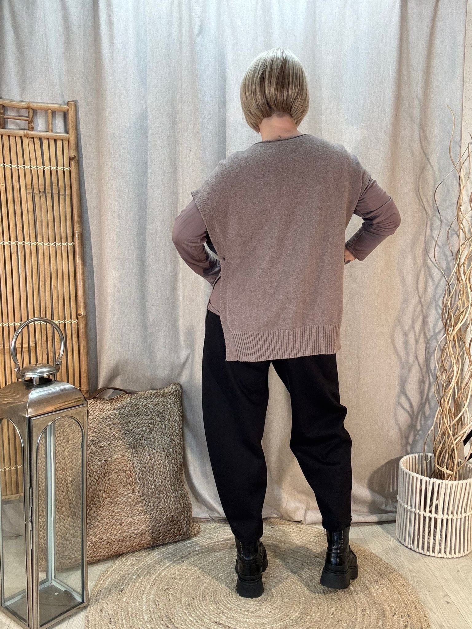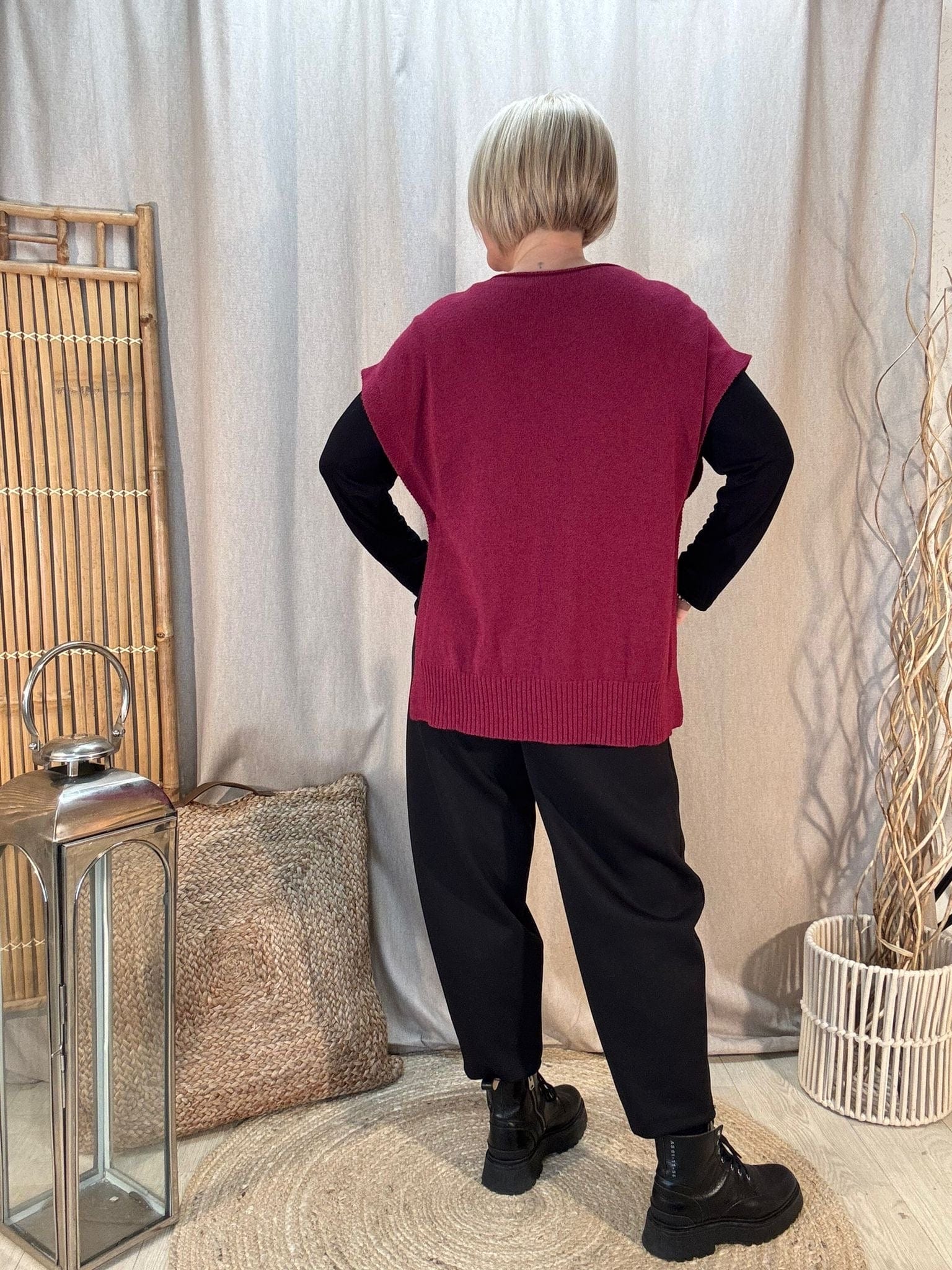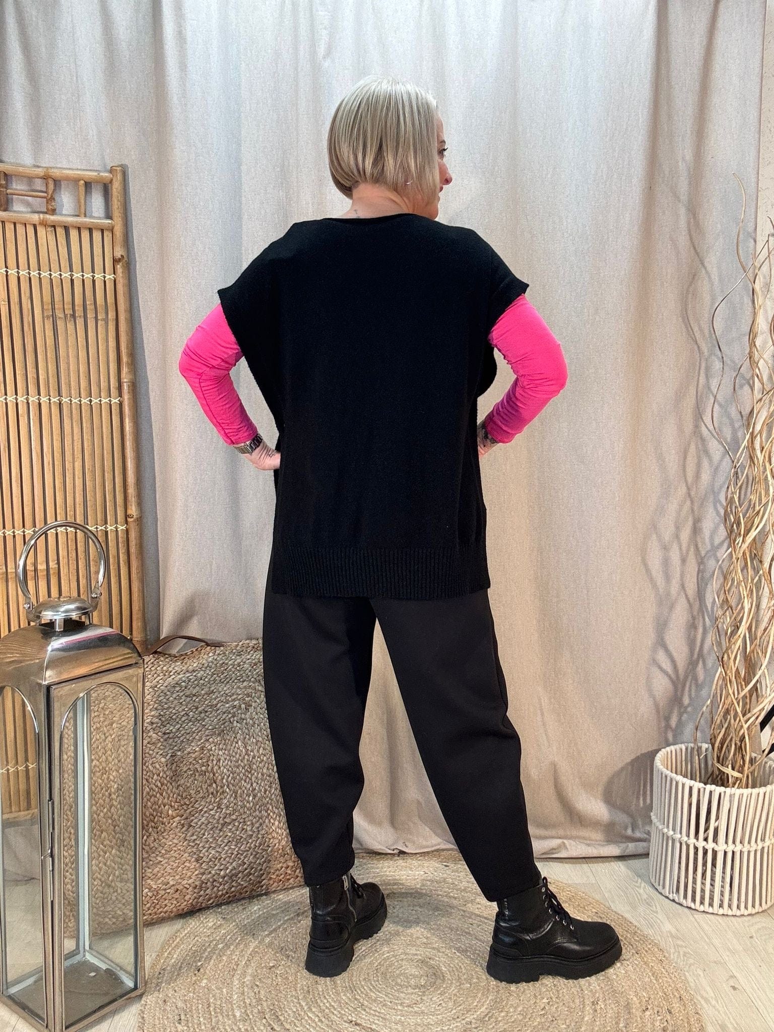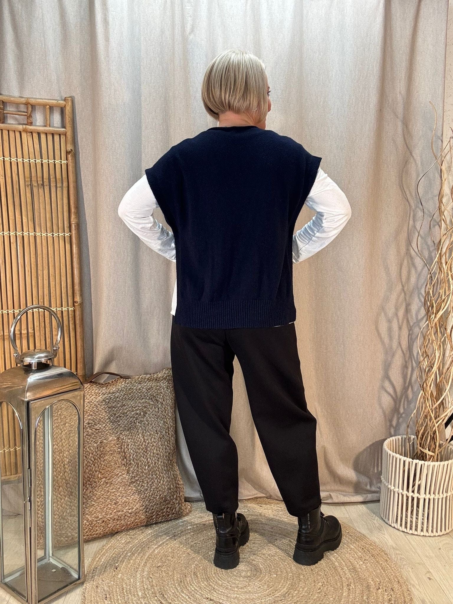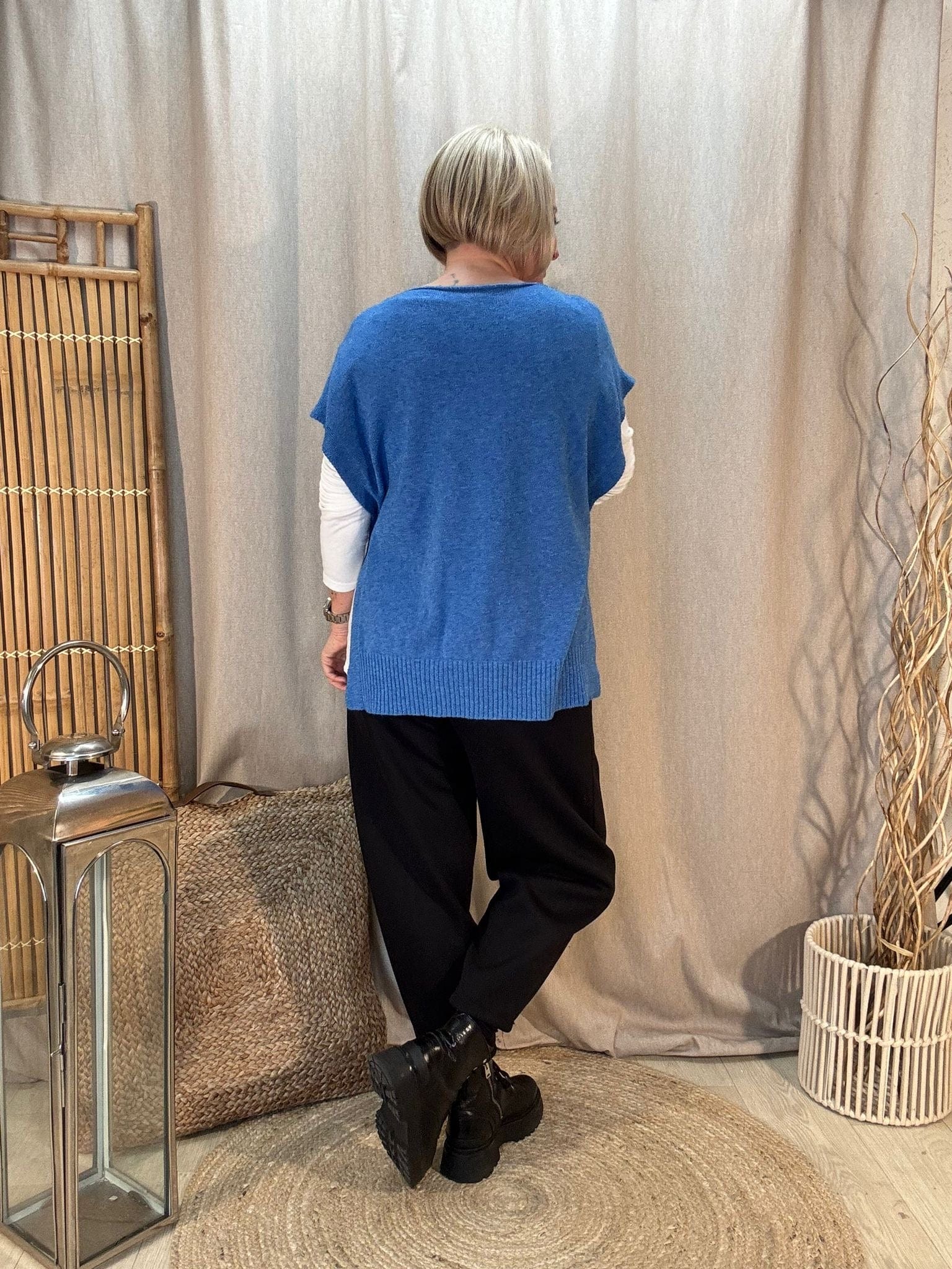 - Premium knitted tank top with a v neck & button sides