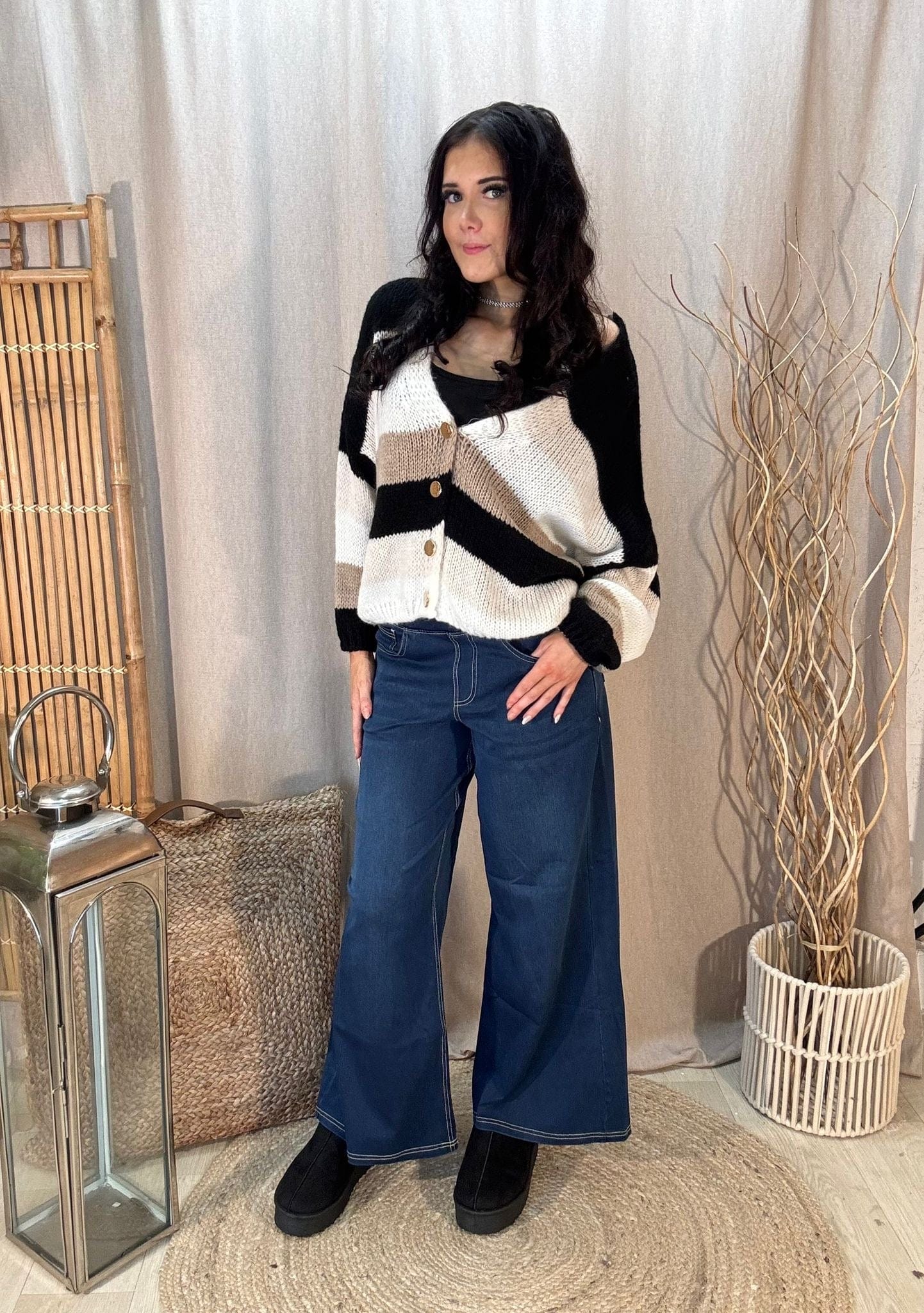 Mid Indigo Flex Fit Wide Leg Elasticated Waistband Jeans Trousers