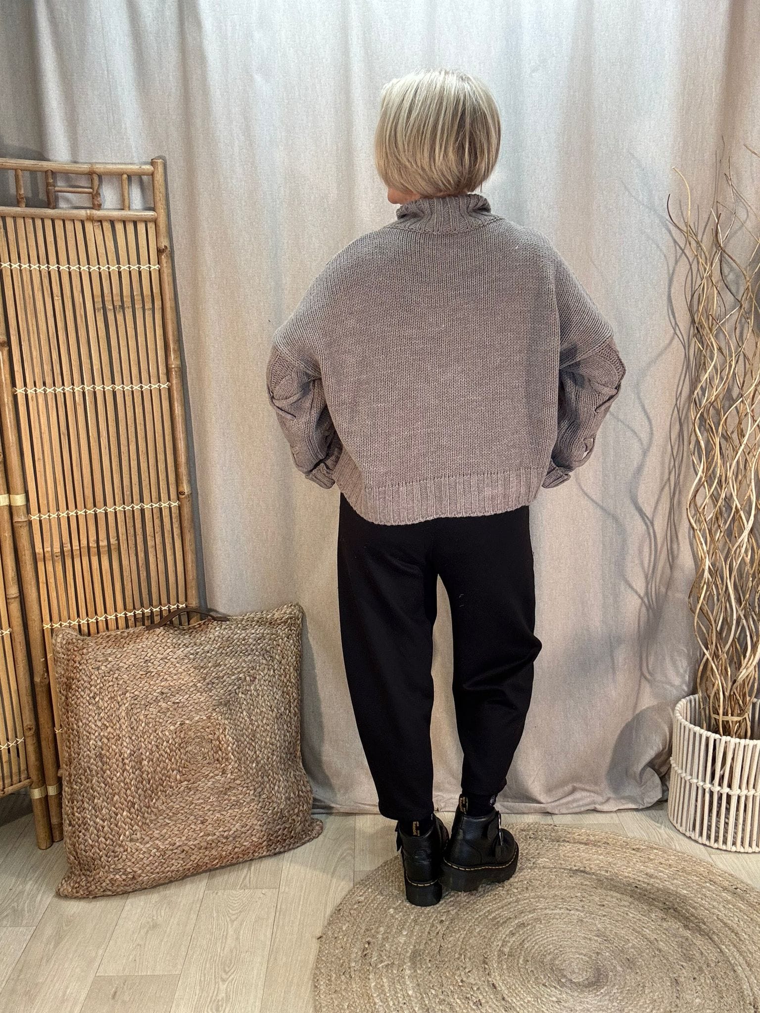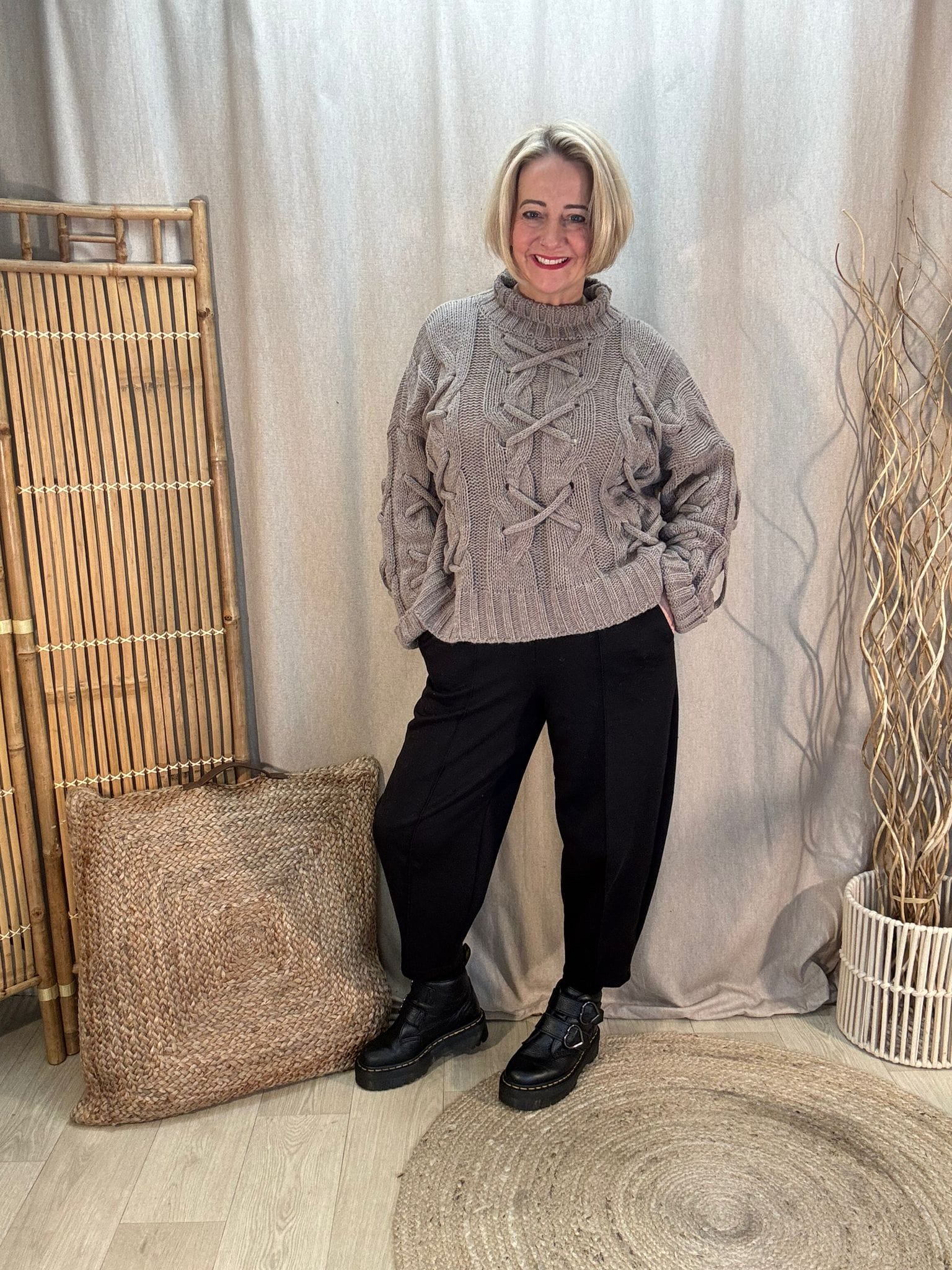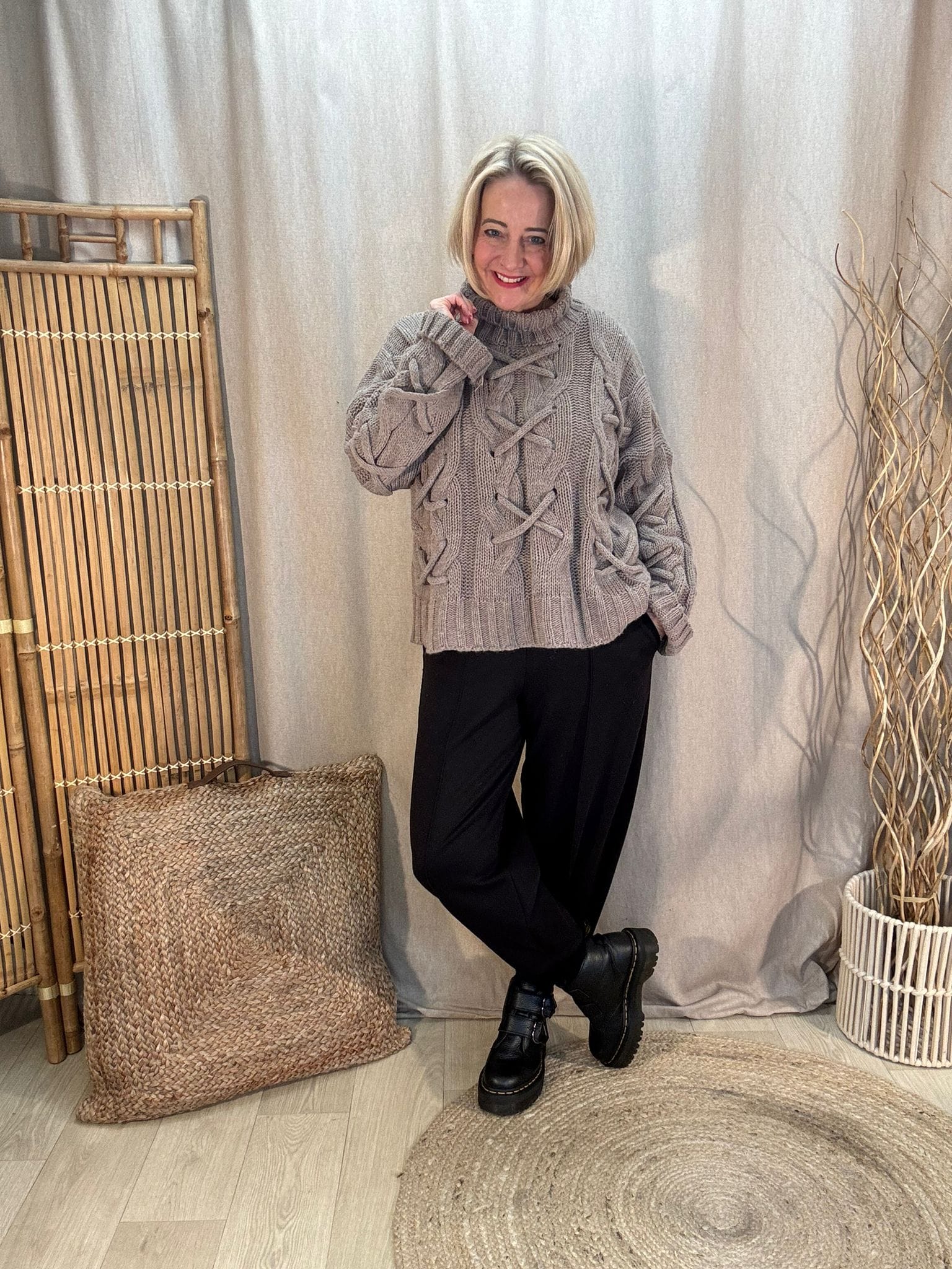 Criss Cross Chunky Knit Funnel Neck Jumper